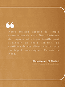 Le Groupe El Atallati est bien plus qu’un promoteur immobilier ; nous sommes les architectes du renouveau de la région Nord. Fondé sur une expertise technique rigoureuse et une passion pour l’innovation, notre groupe s’est imposé comme le leader de la construction de haut standing sous l’impulsion de son fondateur, Abdesselam El Atallati
